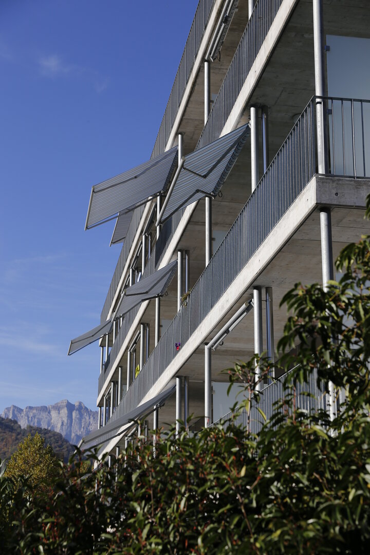 Die Wohnungen selber sind mit 2½ und 3½- Zimmern konzipiert. Die Schlafzimmer, links oder rechts vom Wohnraum angeordnet, können mit über 2 Meter breite Schiebetüren nach Bedarf den Wohnraum vergrössern oder abtrennen. Eingang und Küche sowie Nasszellen sind grosszügig und invalidenkonform gelöst. Das Gebäude ist im Minergie-Standard erstellt und die Heizungsanlage ist am Fernwärmenetz der Gemeinde Flums angeschlossen.