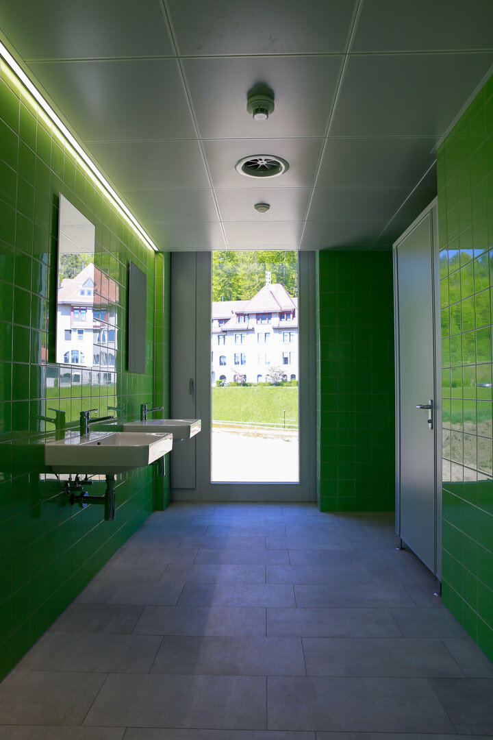 Der geplante Zentrumsbau unterscheidet sich in erster Linie nicht durch sein Gebäudevolumen von den umliegenden Bauten, sondern durch die gewählte Formensprache. Vielmehr betont der Neubau die Bruchstelle zwischen grobkörnigen Bauten auf der einen und feinkörnigen Einfamilienhäusern auf der anderen Strassenseite und findet damit eine verantwortungsvolle Antwort auf die Unterschiede im Quartier.